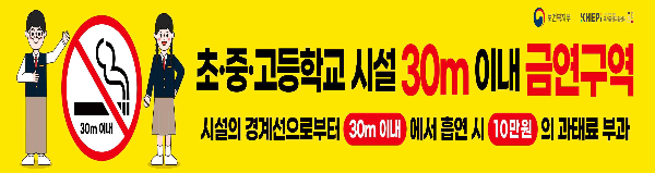 - 어린이집, 유치원, 초중고등학교 주변 30미터 이내에서 흡연이 금지 됩니다.